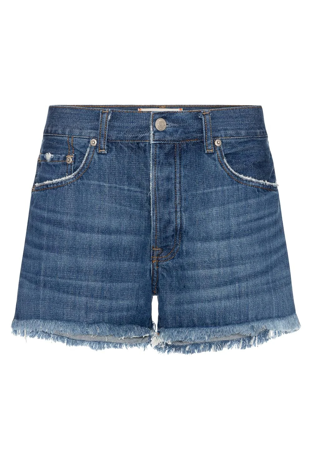 Short confeccionado em jeans de alta qualidade com uma lavagem média/escura. Cintura e comprimento médio garantem um caimento clássico e confortável.