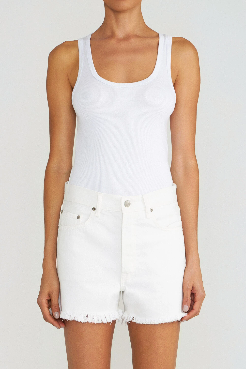 REGATA CONFECCIONADA EM MALHA CANELADA DE ALGODÃO COM MODELAGEM JUSTA AO CORPO, DECOTE EM "U" .