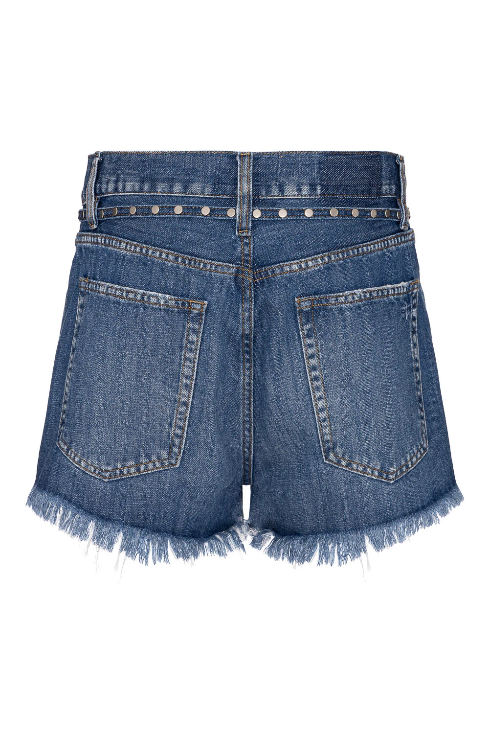 Short com cintura média, modelagem solta e comprimento médio. Cinto confeccionado no mesmo tecido com rebites foscos aplicados. Barra desfiada.