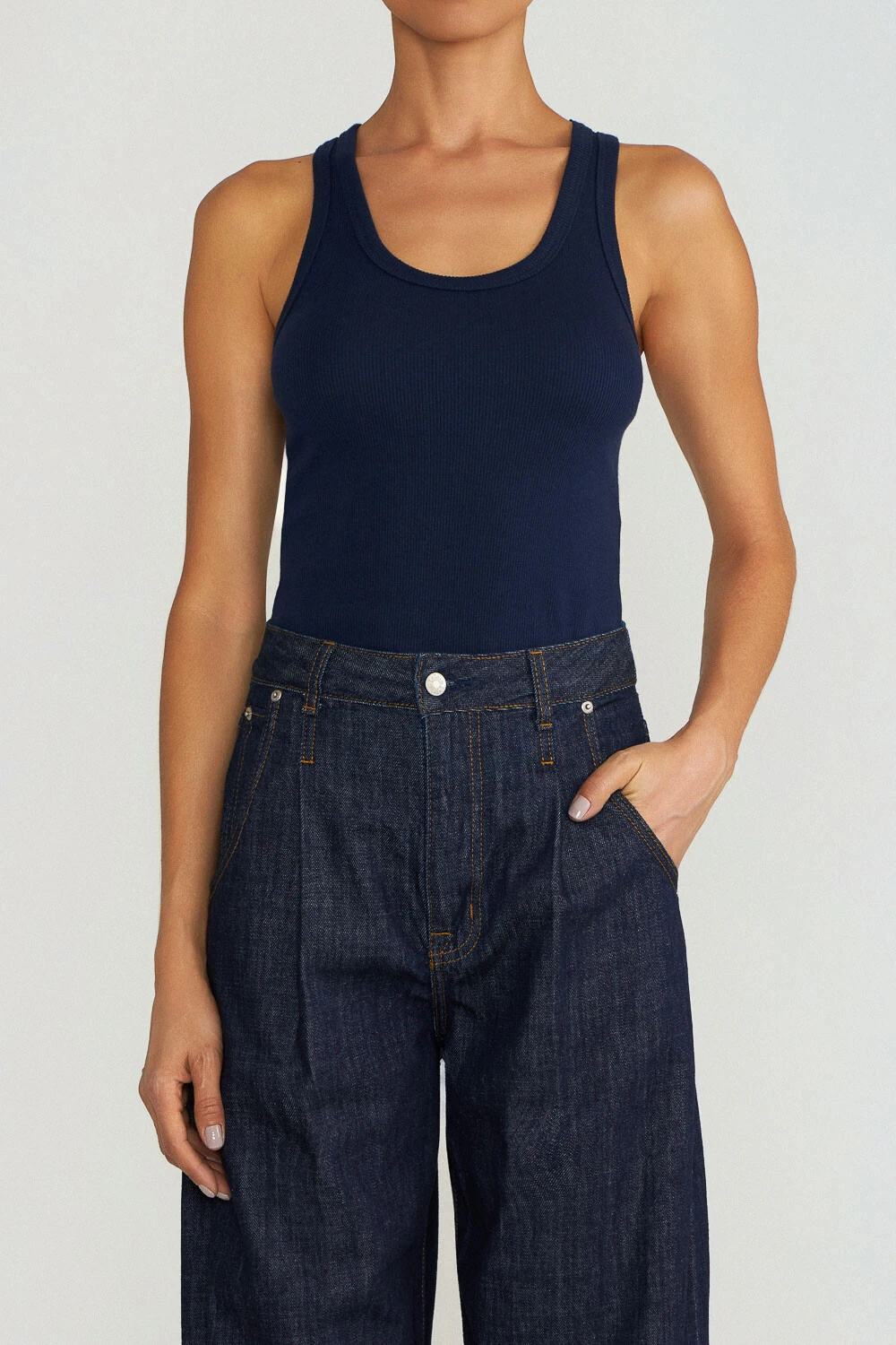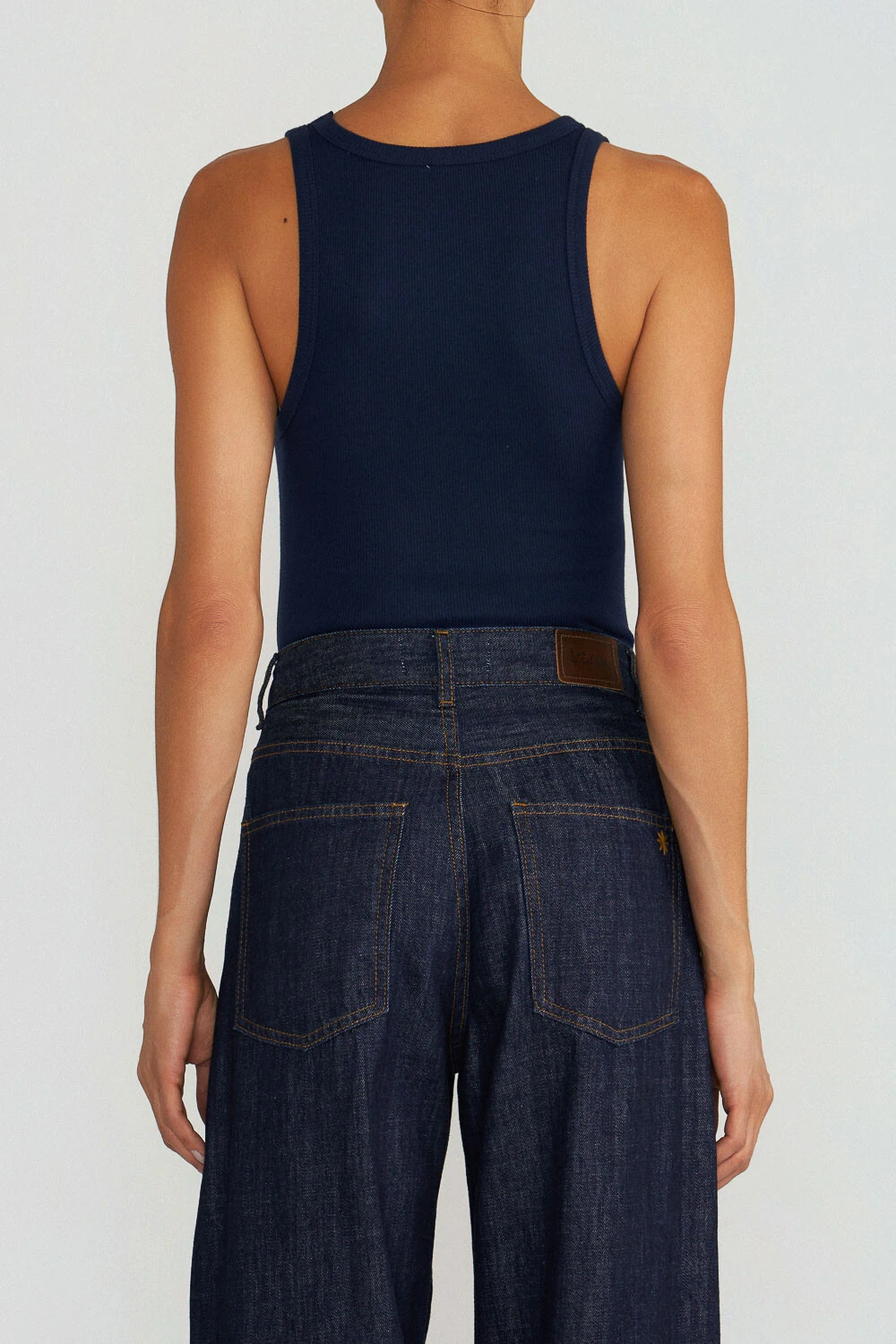 REGATA CONFECCIONADA EM MALHA CANELADA DE ALGODÃO COM MODELAGEM JUSTA AO CORPO, DECOTE EM "U" .
