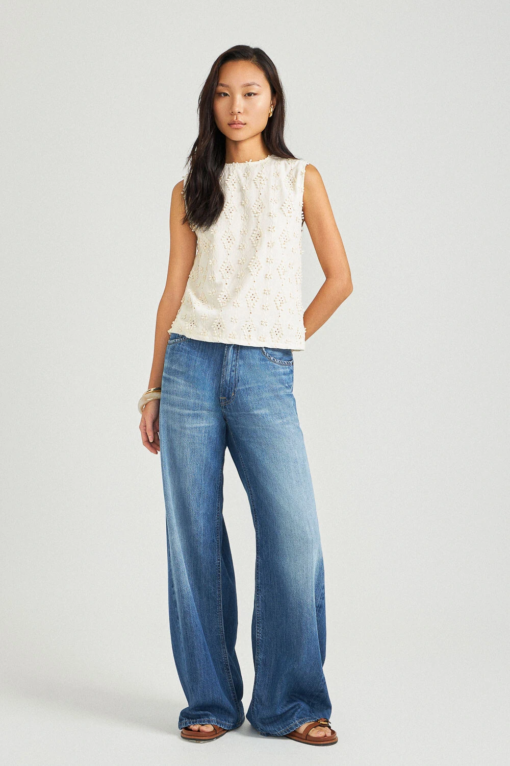 Calça Wide Parker confeccionada em denim de alta qualidade com composição de 65% algodão e 35% liocel, que confere toque suave e excelente caimento. Apresenta modelagem ampla e contemporânea, com pernas soltas e estrutura fluida. A lavagem média realça o tom do jeans, revelando nuances sutis e textura natural. Uma peça versátil e atemporal, ideal para composições modernas e cheias de estilo.