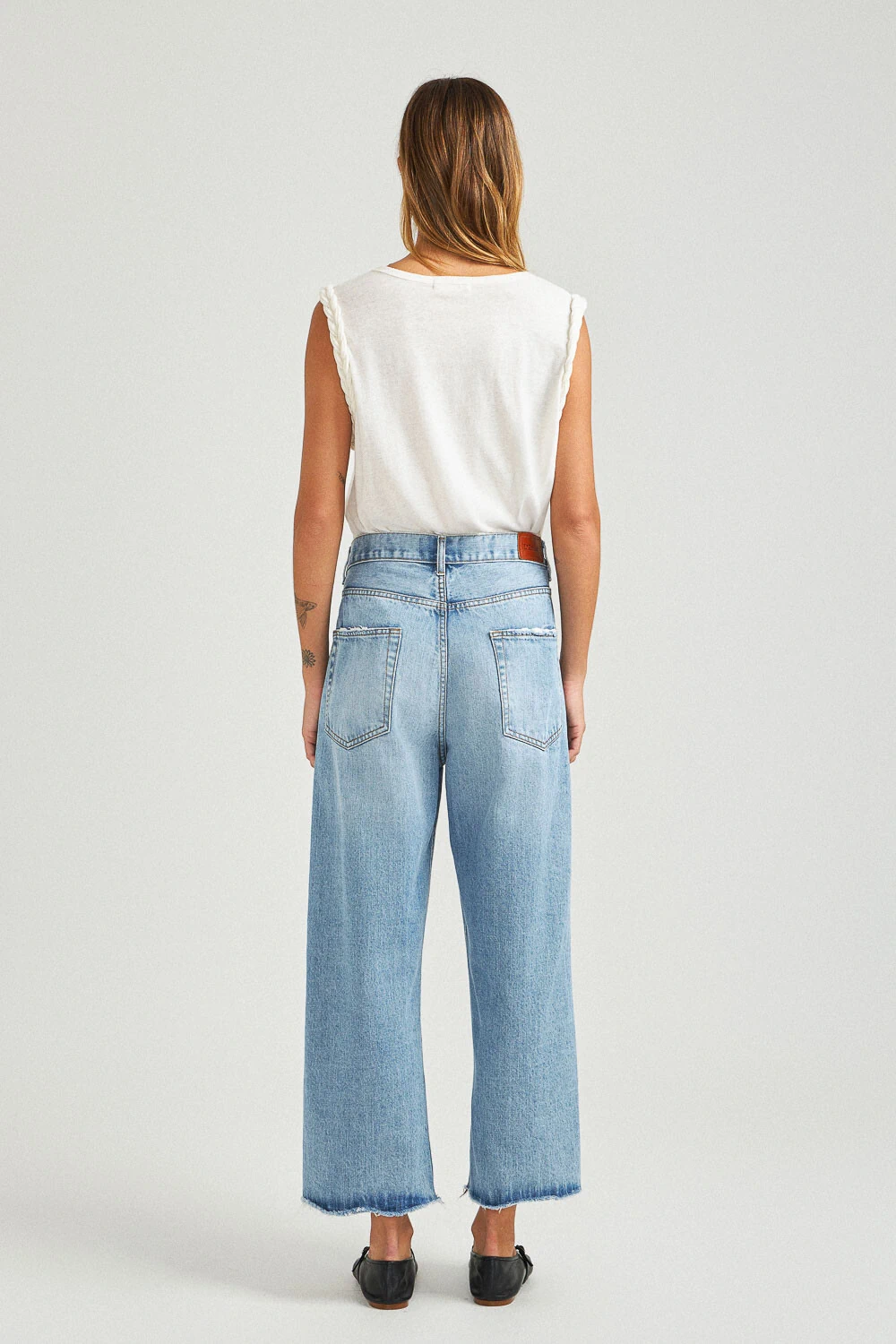 Calça Cross Over confeccionada em jeans 100% algodão, com lavagem vintage que realça o aspecto natural do tecido. Possui vista deslocada e modelagem ampla, garantindo conforto e estilo contemporâneo. A barra a fio acrescenta um toque de autenticidade e personalidade ao visual.