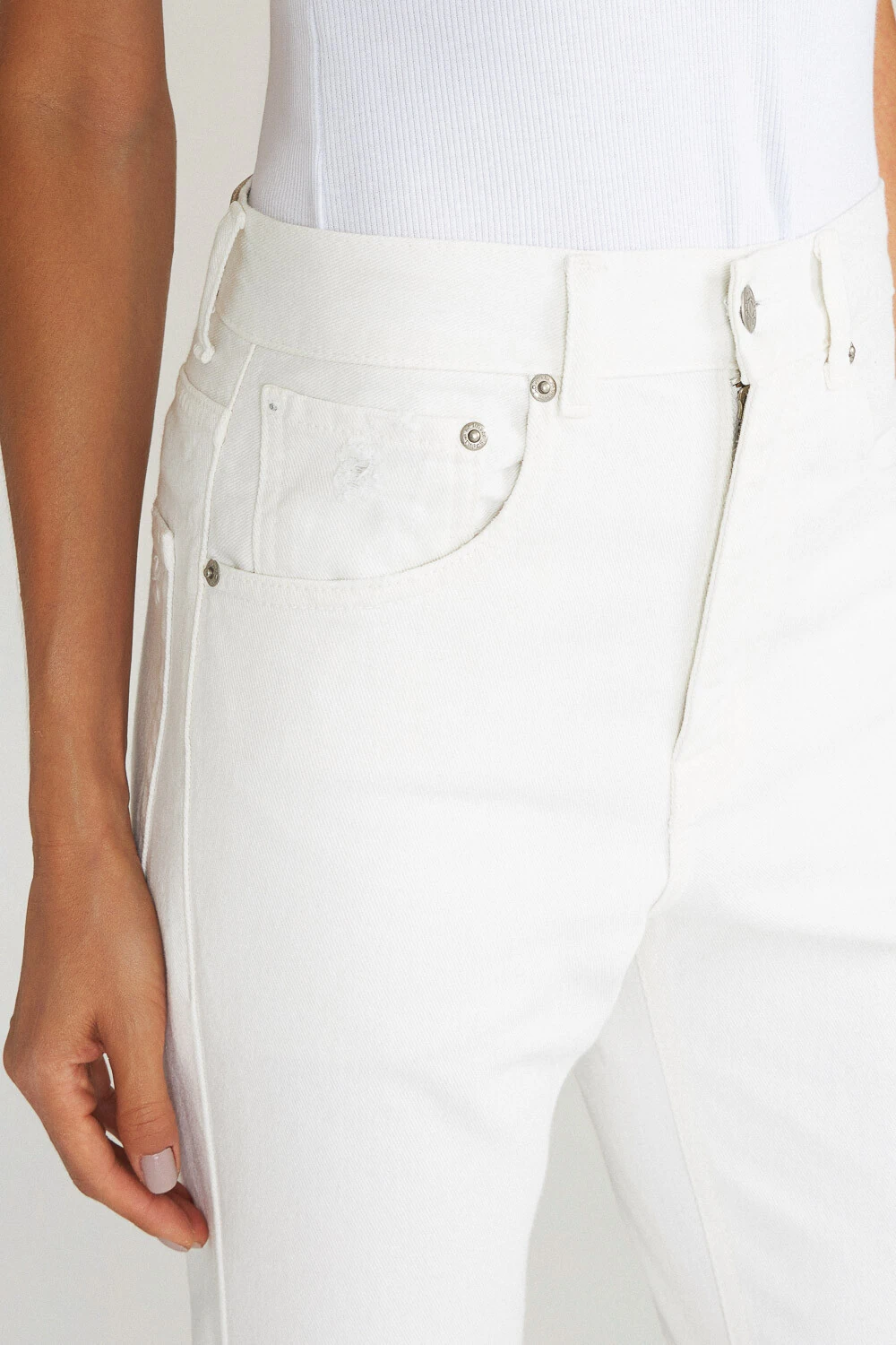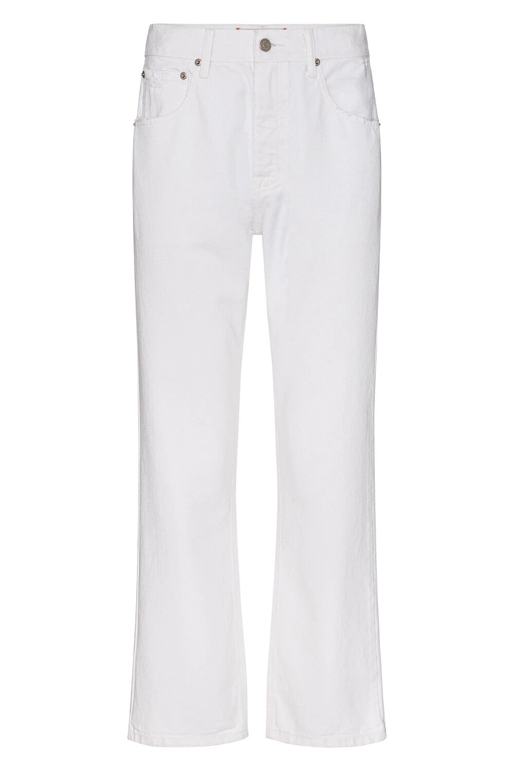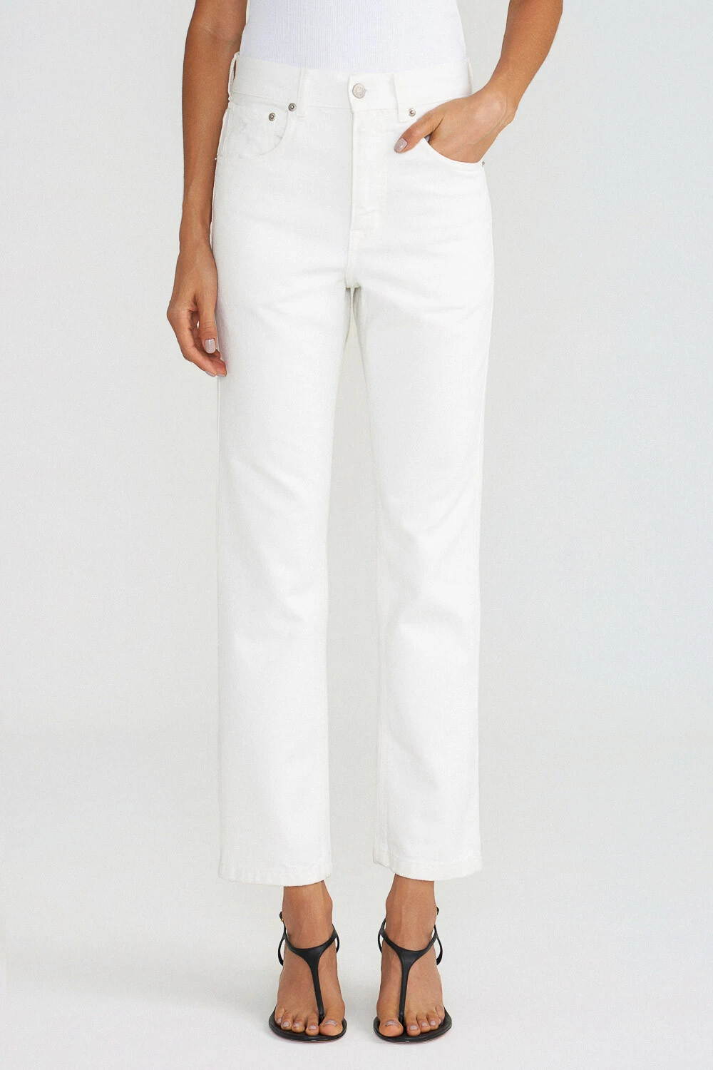 Calça Straight White Denim confeccionada em jeans 100% algodão, com estrutura encorpada e toque natural. A modelagem reta proporciona caimento alinhado e atemporal, valorizando a silhueta de forma sutil e confortável. O tom off denim reforça o visual clean e versátil, perfeito para composições modernas com apelo minimalista. Uma peça essencial, que combina autenticidade e estilo.