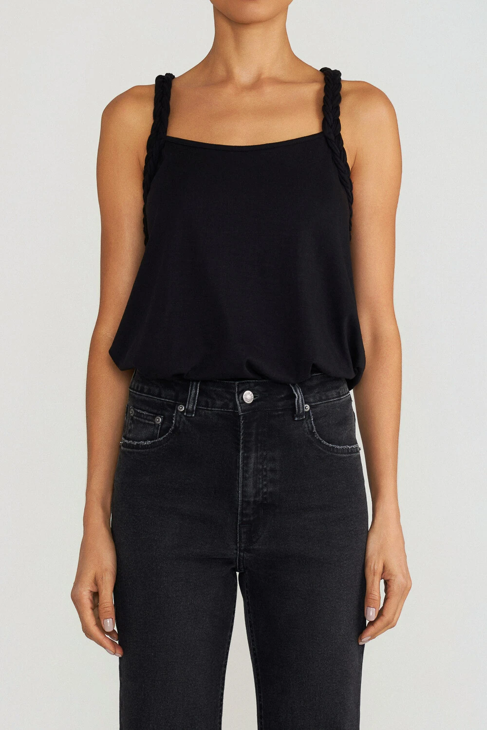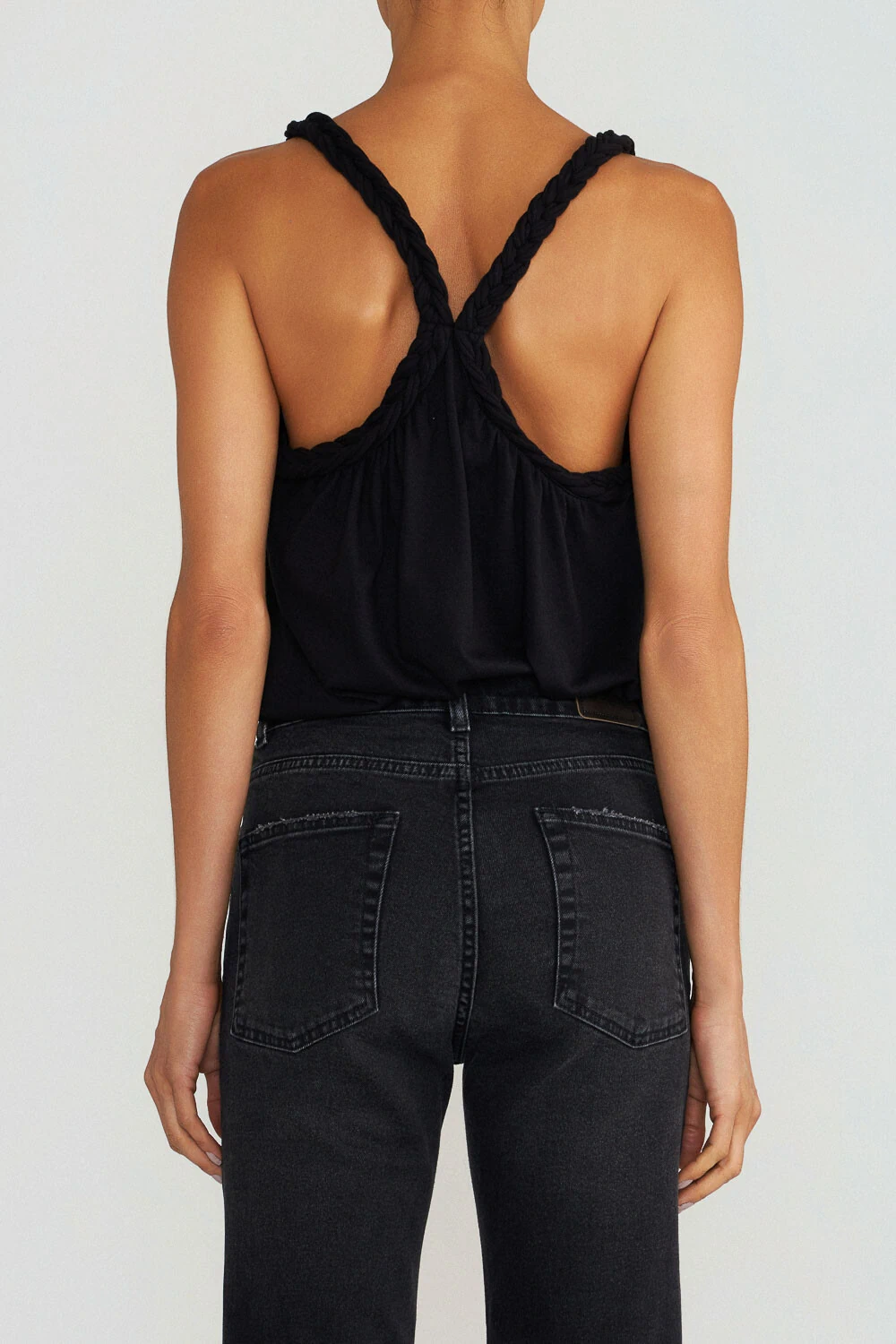 Regata em malha de linho, leve, fluida e respirável, com detalhe trançado que adiciona textura e charme. Caimento natural que une conforto em uma peça versátil.