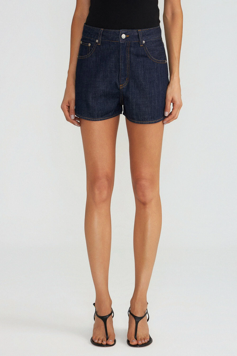 Short em raw denim 100% algodão, cintura média e detalhe de leve abertura na lateral.