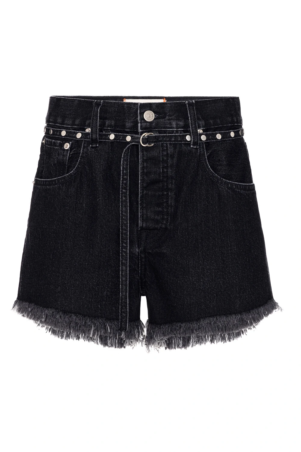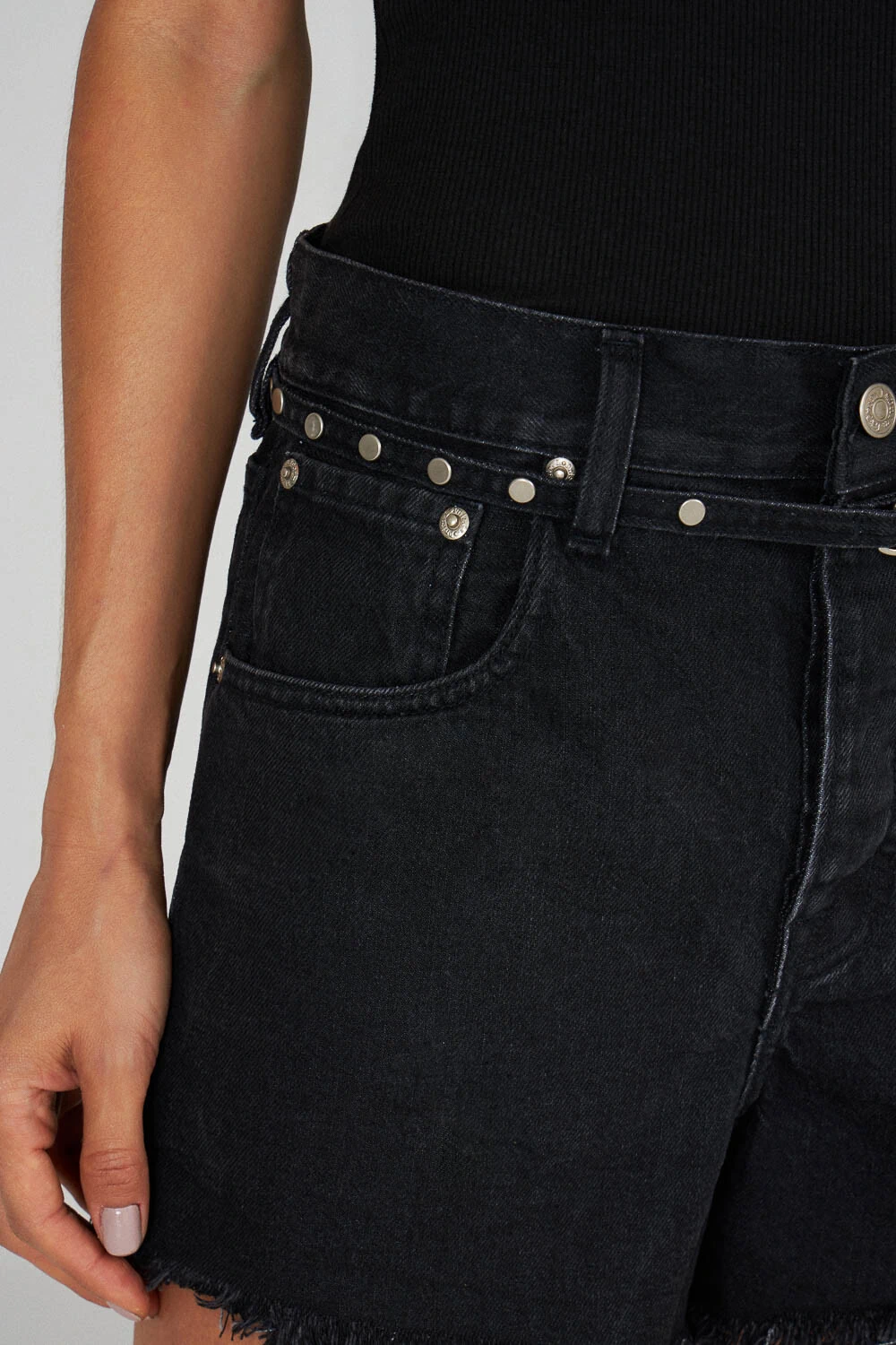 Short Loose em jeans black 100% algodão, com modelagem ampla e caimento descontraído. Acompanha cinto fino com aplicação de tachas, reforçando o estilo moderno e versátil da peça.