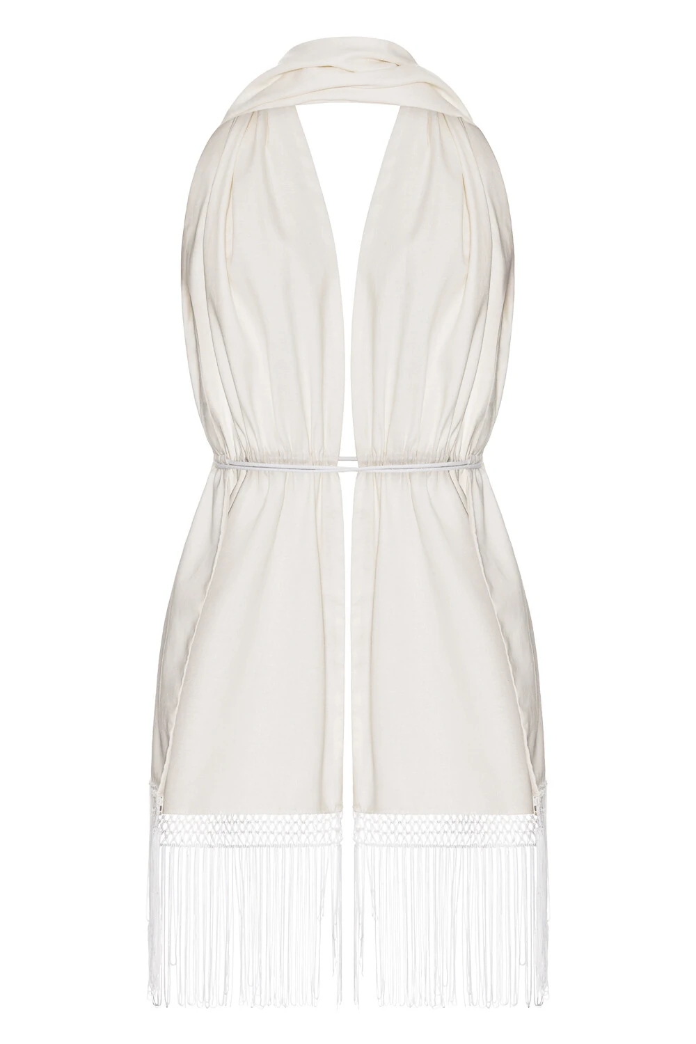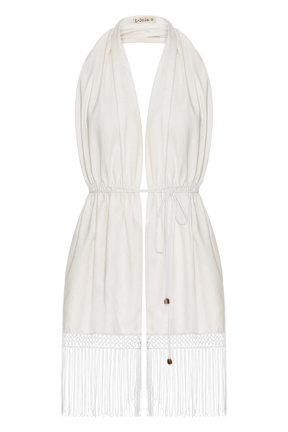 Confeccionado em cambraia mista de algodão e linho, este top combina leveza, conforto e um caimento suave, ideal para looks frescos e elegantes. O design em frente única no estilo lenço traz um drapeado charmoso, enquanto o ajuste em cordão de algodão na mesma cor do tecido permite um fit personalizado ao corpo. Os detalhes em franjas de Rayon dão movimento e um toque sofisticado, complementados por ponteiras resinadas que garantem durabilidade e um acabamento refinado.
