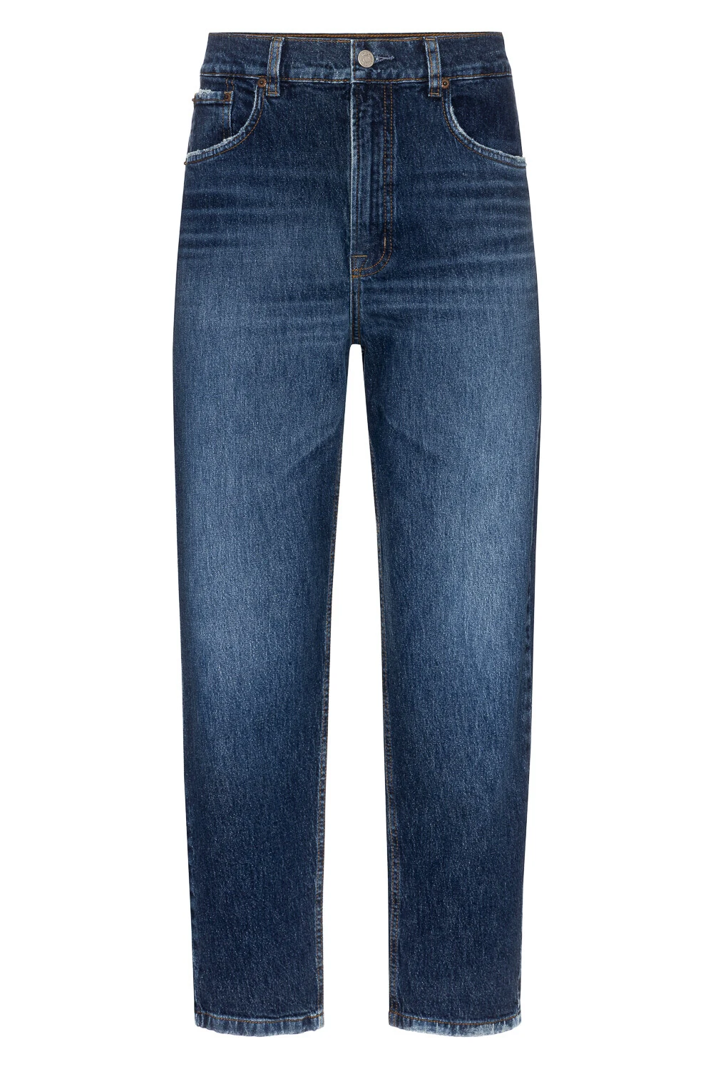 Calça Reta Midi Rise Jeans Vintage Destroyed