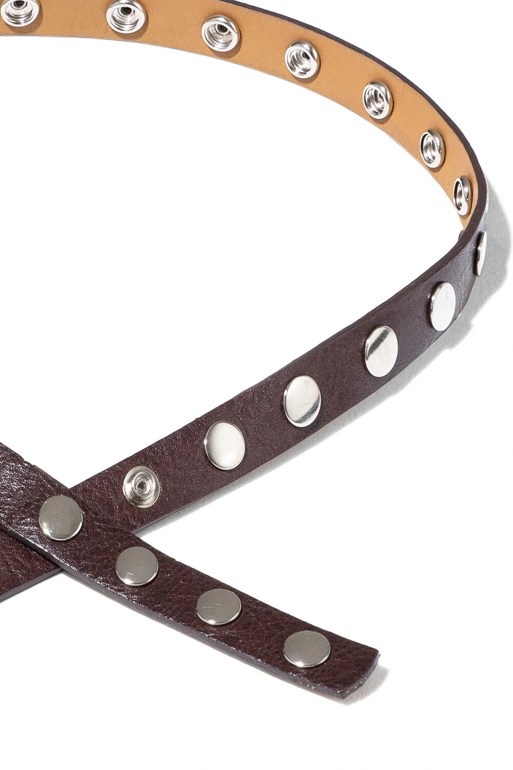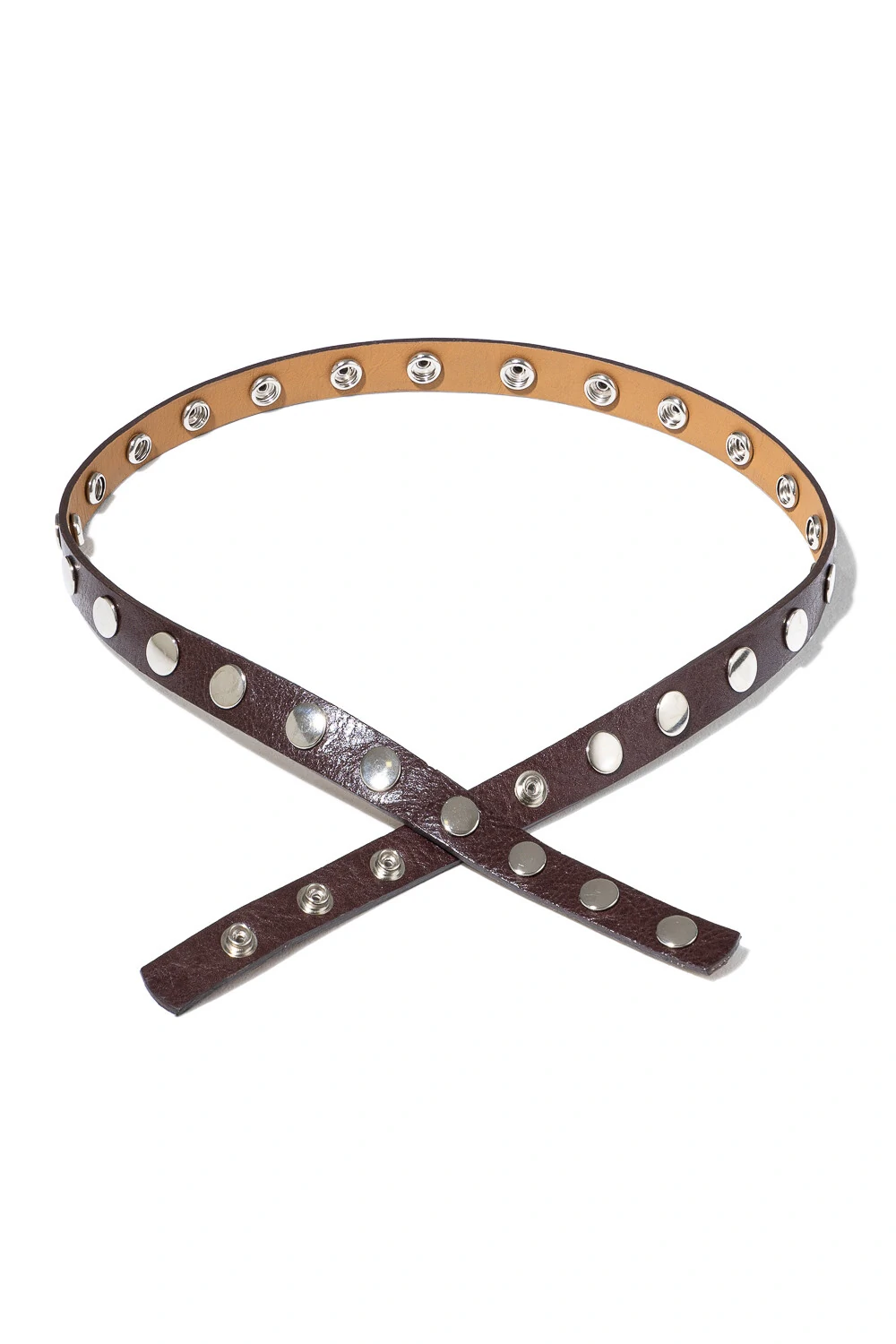 Cinto em 100% couro com design exclusivo de botões de pressão metálicos em toda a sua extensão. Sem fivelas, o modelo aposta na praticidade das diversas regulagens, permitindo um ajuste preciso e versátil. Um acessório atemporal com pegada contemporânea, perfeito para transformar o caimento de calças, blazers ou vestidos.