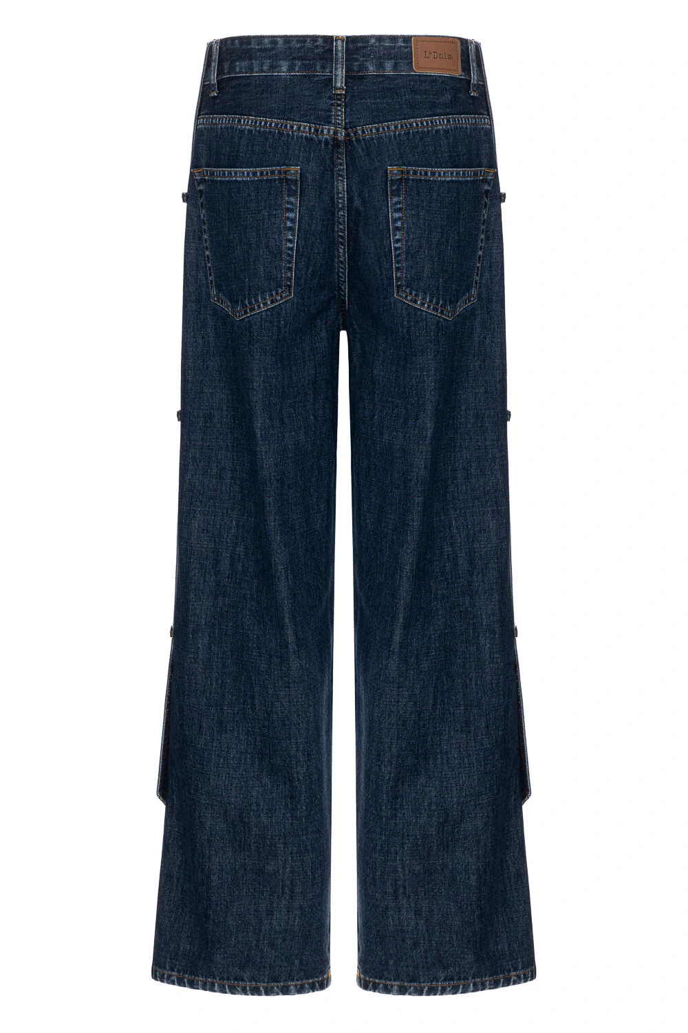 Confeccionada em jeans 100% algodão, possui lavagem dark que traz um visual sofisticado e atemporal, fácil de combinar em diferentes propostas de look. A modelagem ampla, com comprimento alongado, garante um caimento solto e confortável, perfeito para quem busca estilo sem abrir mão da liberdade de movimento. O destaque da peça está nas faixas aplicadas sob os passantes laterais, que são removíveis, um detalhe versátil que permite personalizar o uso e criar produções que vão do minimalista ao mais marcante. O fechamento por zíper e botão complementa a peça com praticidade e acabamento clássico.