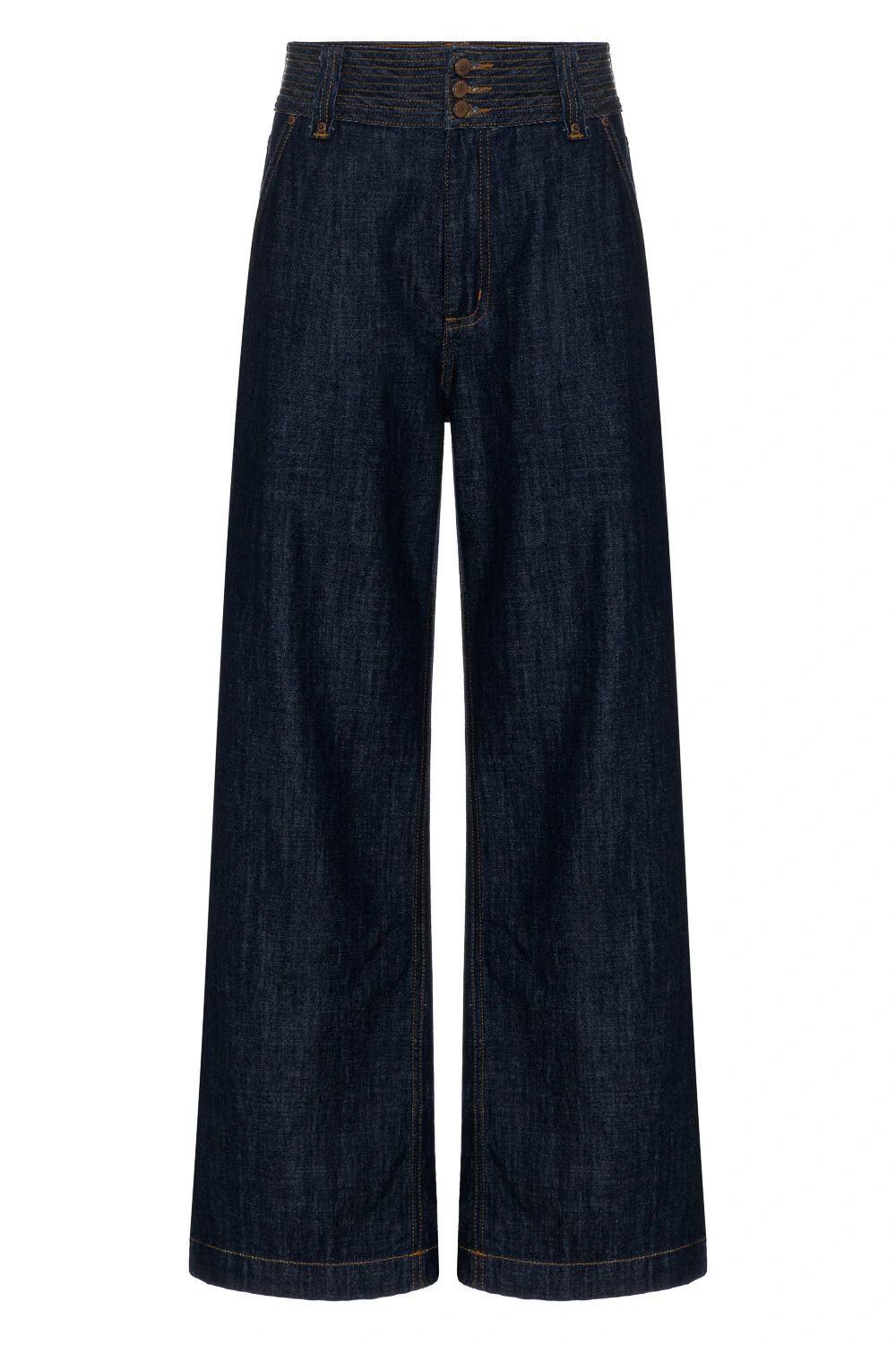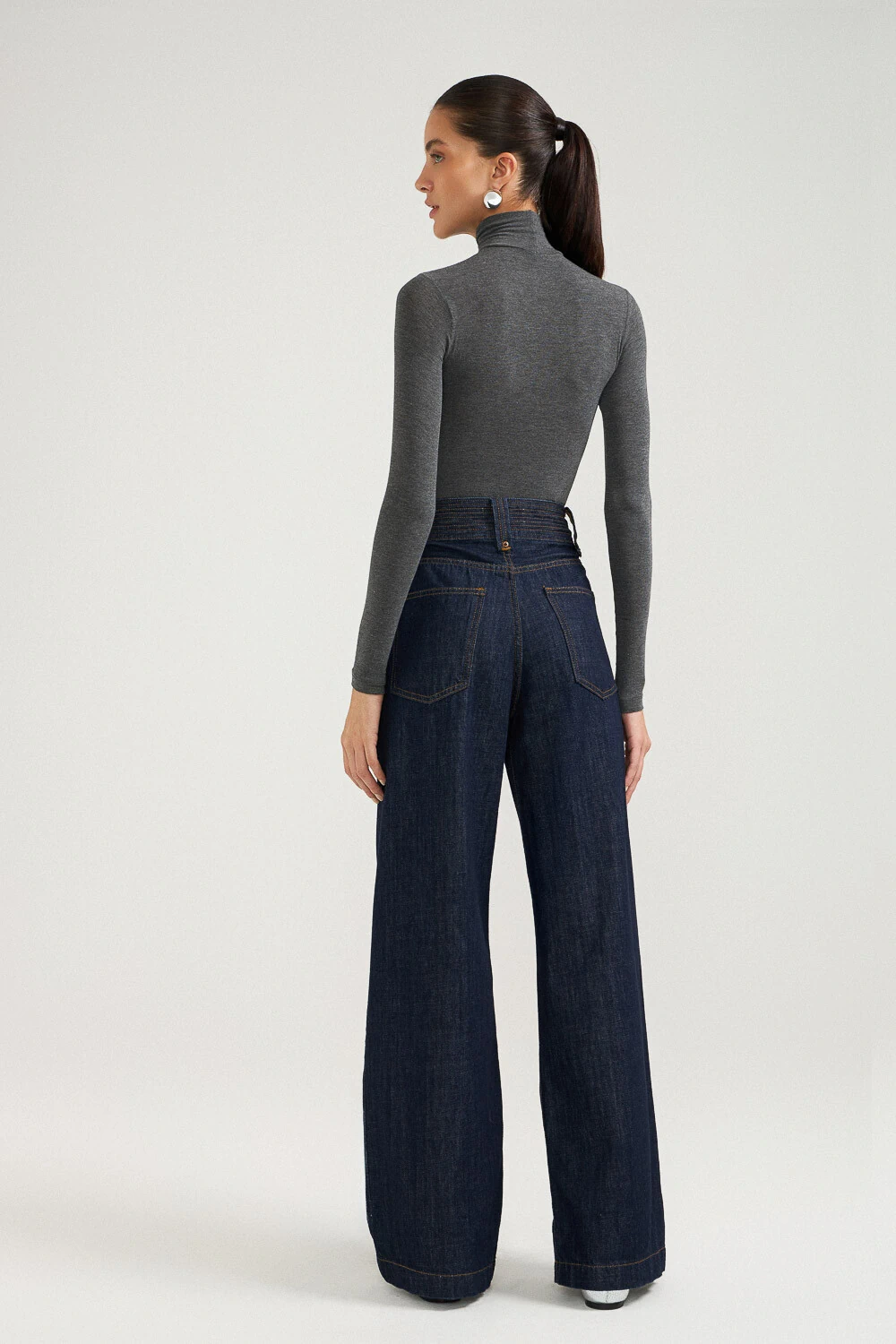 ⚠️ Atenção: Esta peça é feita com raw denim (jeans cru, sem lavagens). Por isso, pode soltar pigmento nos primeiros usos e lavagens, especialmente em contato com superfícies claras. Recomendamos lavar separadamente antes do uso e evitar atrito com bolsas, calçados e estofados claros.